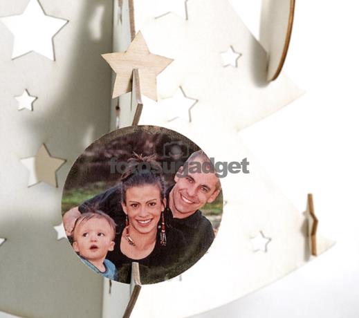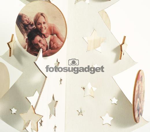 Albero di Natale in legno personalizzato. La stampa delle tue foto come decorazioni dell'albero, l' albero di Natale in legno è decorato con stelle intagliate nello stesso legno, un oggetto unico per arredare nel periodo dell'anno più magico. L'Albero di Natale in Legno è un complemento d'arredo originale grazie alla stampa delle tue foto preferite direttamente sui supporti sferici che lo decorano, Le tue foto su albero di Natale in legno renderanno unico il tuo Natale. L' albero è realizzato direttamente dai designer Fotomox nei nostri laboratori, un prodotto unico sul mercato un vero Made in Italy. Possibilità di scegliere due colorazioni dell' albero sia color legno naturale o color legno sbiancato, si può scegiere la versione da 6 foto Stampate sulle forme a sfera in legno corredato da sei stelline in legno non stampate, o la versione di 12 foto stampate direttamente su legno dalla forma sferica. Fotomox il tuo mondo creativo!