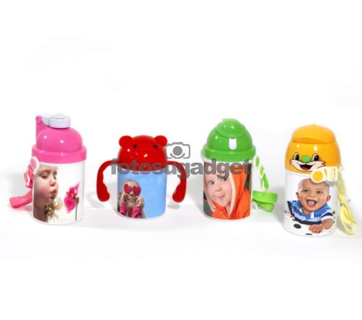 La simpatica borraccia in plastica, personalizzata per i tuoi bimbi. Disponibile in varie colorazioni, permette una stampa a tutto tondo della foto da te scelta ed è lavabile anche in lavastoviglie.