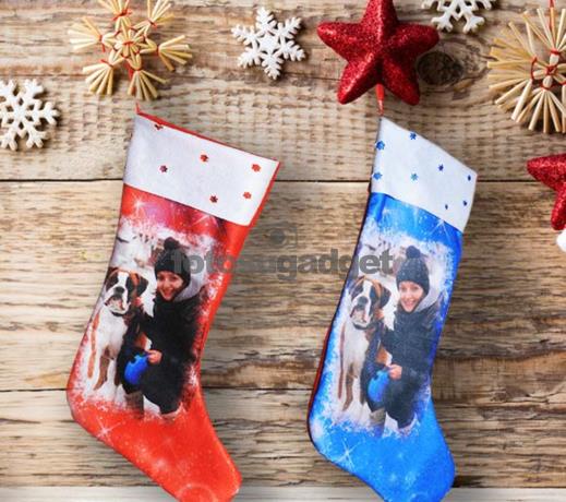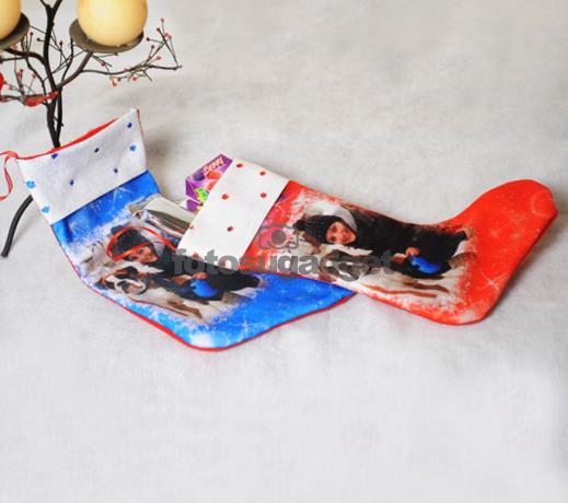 La Calza della Befana personalizzata con le tue fotografie. Le calze sono realizzate in diversi tessuti uno in pannolencio dall’effetto vellutato e rifinita nella parte superiore con una fascia di colore rosso sulla quale si possono stampare degli auguri oppure il nome del destinatario del regalo del solo colore nero, mentre l' altra calza è realizzata in sacco e tessuto scamosciato personalizzabile con una foto sul fonte della calza. La calza natalizia personalizzata è cucita e rifinita a mano prestando attenzione ad ogni dettaglio e viene sottoposta a numerosi controlli qualitativi durante le diverse fasi di lavorazione. Per i tuoi regali di natale scegli fotosugadget in pochi giorni li ricevi direttamente a casa.