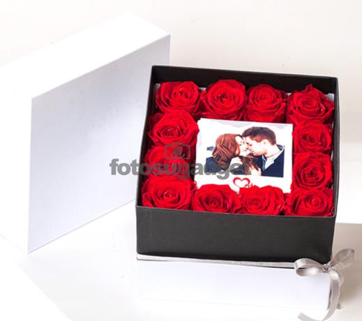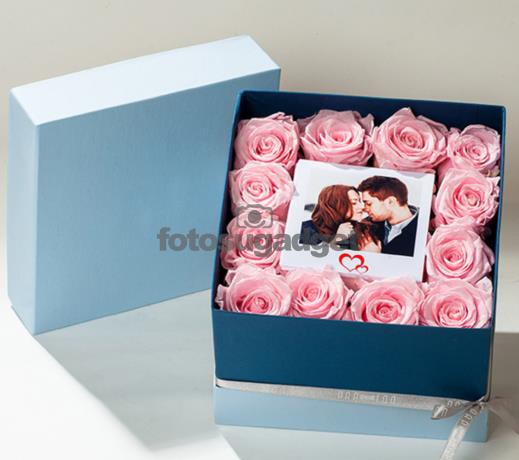 Flower Box con rose stabilizzate, icluso nel box 10 foto effetto polaroid, crea online il tuo regalo personalizzato con fotosugadget. Box di rose stabilizzate e profumate sono disponibili in vari colori, il Flower box puoi personalizzarlo con 10 foto polaroid nel formato 10x10 cm, un regalo unico e originale. Ampia scelta di colori sia del box che delle rose stabilizzate.