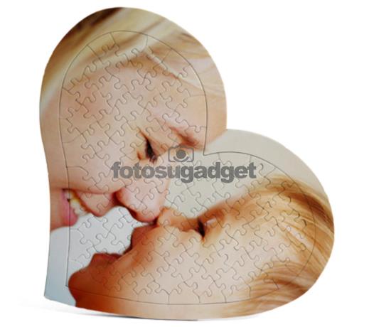 Personalizza il tuo Puzzle Cuore con cornice. Da oggi Fotosugadget arricchisce la già nutrita famiglia dei Foto Puzzle, offrendoti il Puzzle con Cornice, nella romanticissima forma a Cuore. La cornice prosegue infatti la stampa della foto da te inserita, mentre il "cuore" centrale è costituito dal classico puzzle. Nel retro inoltre è presente un supporto in cartoncino, adatto per l' appoggio da tavolo. Le stampe su foto puzzle sono realizzate da Fotosugadget in altissima qualità e garantiscono una resa davvero brillante della foto da te scelta. Il foto puzzle cuore con cornice è l' idea regalo davvero originale per San Valentino o per qualsiasi altra ricorrenza romantica.