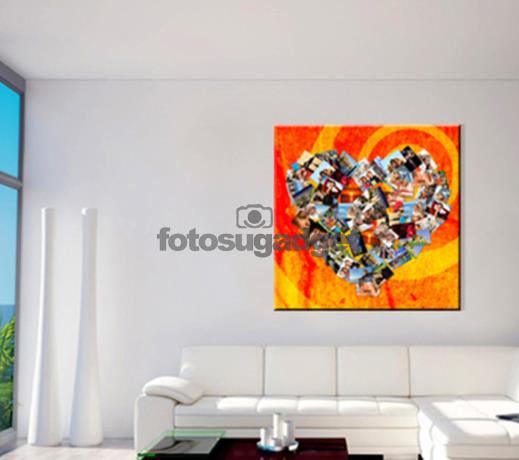 Foto collage su tela canvas a forma di cuore. La migliore soluzione per la tua raccolta di fotografie. Con la stampa su tela Collage puoi donare luce e vitalità alle foto delle tue vacanze, dei tuoi momenti più belli trasformandoli in veri opere d'arte a forma di cuore. La tela intelaiata su robusto telaio in legno di abete completa di ganci e pronta da appendere.