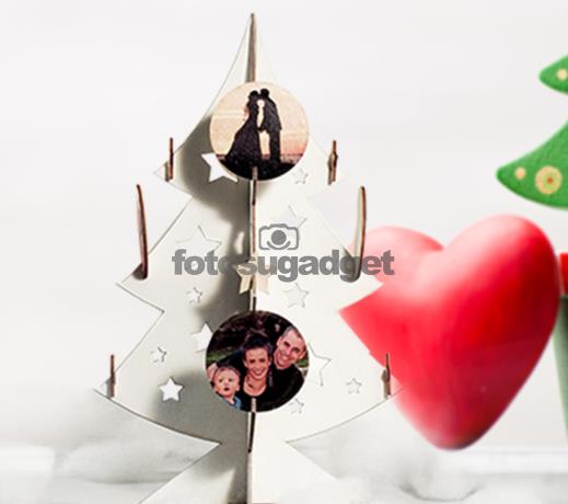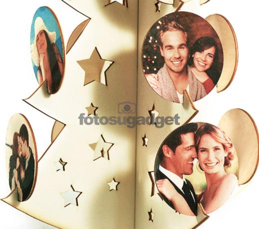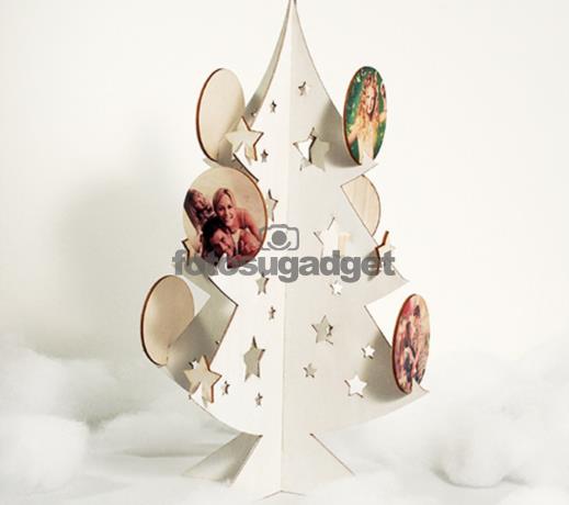 Albero di Natale in legno personalizzato. La stampa delle tue foto come decorazioni dell'albero, l' albero di Natale in legno è decorato con stelle intagliate nello stesso legno, un oggetto unico per arredare nel periodo dell'anno più magico. L'Albero di Natale in Legno è un complemento d'arredo originale grazie alla stampa delle tue foto preferite direttamente sui supporti sferici che lo decorano, Le tue foto su albero di Natale in legno renderanno unico il tuo Natale. L' albero è realizzato direttamente dai designer Fotomox nei nostri laboratori, un prodotto unico sul mercato un vero Made in Italy. Possibilità di scegliere due colorazioni dell' albero sia color legno naturale o color legno sbiancato, si può scegiere la versione da 6 foto Stampate sulle forme a sfera in legno corredato da sei stelline in legno non stampate, o la versione di 12 foto stampate direttamente su legno dalla forma sferica. Fotomox il tuo mondo creativo!