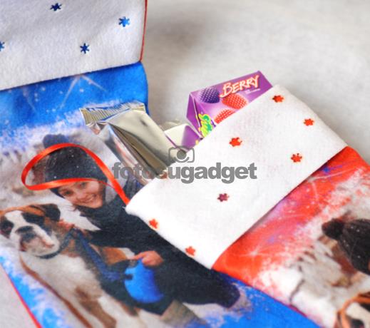 La Calza della Befana personalizzata con le tue fotografie. Le calze sono realizzate in diversi tessuti uno in pannolencio dall’effetto vellutato e rifinita nella parte superiore con una fascia di colore rosso sulla quale si possono stampare degli auguri oppure il nome del destinatario del regalo del solo colore nero, mentre l' altra calza è realizzata in sacco e tessuto scamosciato personalizzabile con una foto sul fonte della calza. La calza natalizia personalizzata è cucita e rifinita a mano prestando attenzione ad ogni dettaglio e viene sottoposta a numerosi controlli qualitativi durante le diverse fasi di lavorazione. Per i tuoi regali di natale scegli fotosugadget in pochi giorni li ricevi direttamente a casa.