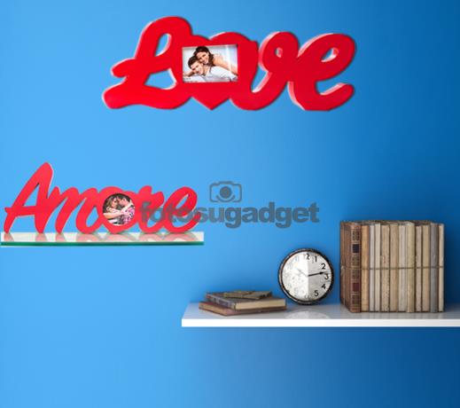 Cornice Love o Amore personalizzabile con la stampa di foto digitale. Cornice in legno con la possibilità di inserire una fotografia nel formato 10x15 per la cornice Love oppure una fotografia 8x8 cm per la cornice Amore. Nuova forma e dimensione circa 51x19 cm la cornice Love, mentre 61x24 cm la cornice Amore, la cornice è ritagliata in lettere e unite tra loro. Un idea regalo per San Valentino per sopprendere chi ami.