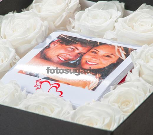 Flower box con rose stabilizzate, personalizzalo con 10 foto polaroid 10x10 cm.