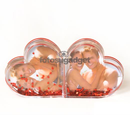 Foto globo You and Me personalizzato a forma di cuore. Due cuori personalizzabili con due foto, la lucentezza delle paiette a forma di cuore per rendere i tuoi ricordi incantevoli. Elegante e dal fascino delicato per arricchire le tue immagini in un’ atmosfera romantica e intima. Ideale regalo per la persona che ami. Potrai personalizzarlo con un'immagine e del testo a tua scelta.