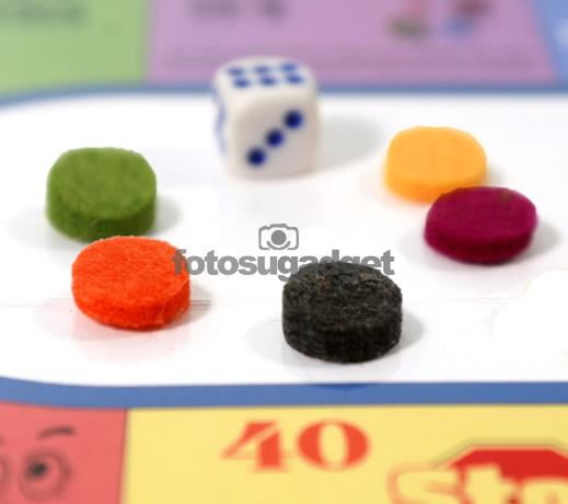 • Completo di 2 dadi e 6 pedine (cerchi in felco di colore differente) .