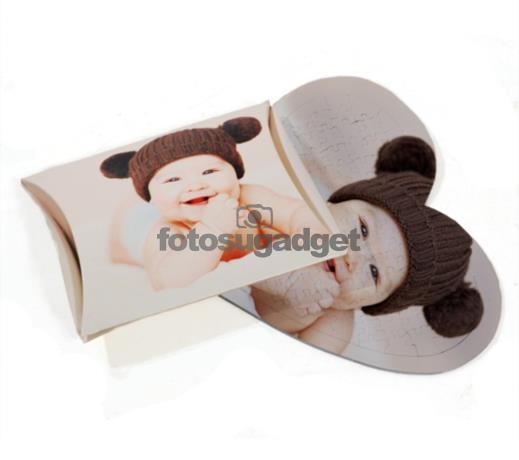 Personalizza il tuo Puzzle Cuore con cornice. Da oggi Fotosugadget arricchisce la già nutrita famiglia dei Foto Puzzle, offrendoti il Puzzle con Cornice, nella romanticissima forma a Cuore. La cornice prosegue infatti la stampa della foto da te inserita, mentre il "cuore" centrale è costituito dal classico puzzle. Nel retro inoltre è presente un supporto in cartoncino, adatto per l' appoggio da tavolo. Le stampe su foto puzzle sono realizzate da Fotosugadget in altissima qualità e garantiscono una resa davvero brillante della foto da te scelta. Il foto puzzle cuore con cornice è l' idea regalo davvero originale per San Valentino o per qualsiasi altra ricorrenza romantica.